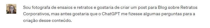 Vamos ver mais alguns exemplos do uso do ChatGPT para a criação de conteúdo para blog.